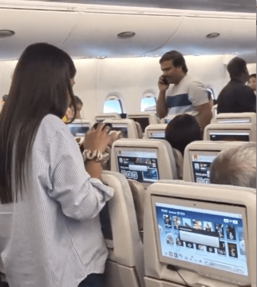 ▲舊金山國際機(jī)場一班準(zhǔn)備飛往印度的阿聯(lián)酋航空客機(jī)上,有乘客要求落機(jī)。X @URScrewed 片段截圖