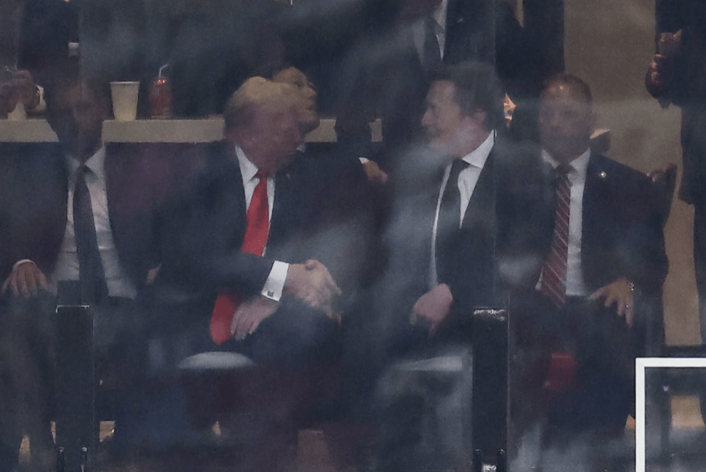 ▲美國總統(tǒng)特朗普與科技富豪馬斯克周日在保守派活動人士查理·柯克(Charlie Kirk)的喪禮上罕見同框,兩人不但坐在一起,還親切握手交談。 法新社