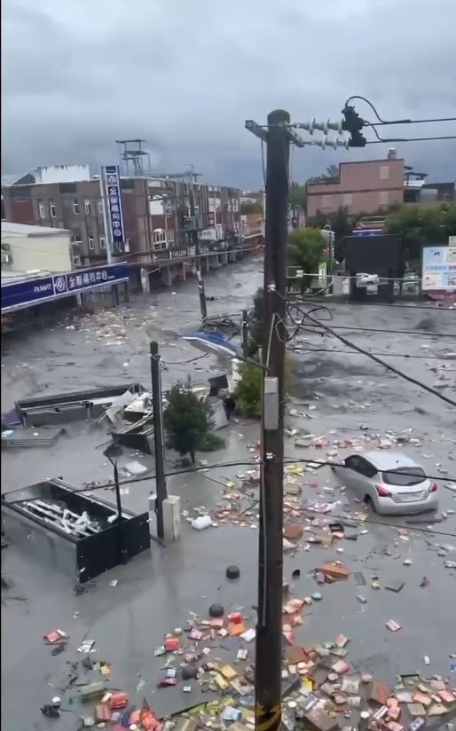綜合臺媒報道, 樺加沙掠過臺灣后,23日下午2點50分,花蓮馬太鞍溪上游堰塞湖提前溢流,水位瞬間驟降14米,等于有1540萬噸的洪水涌出,相當于6000個奧運標準游泳池的水量,泥流如同海嘯沖入光復鄉(xiāng)市區(qū),許多民眾來不及躲在高處,受困在洪水中。