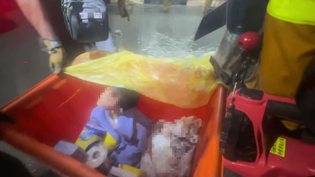 各地搜救團隊持續(xù)救援,有消防人員在敦厚路救出2名女子、2名幼童,眾人將男童和幼嬰放置在橙色膠桶,從湍急泥水中一步步將孩子們運送至安全地帶。