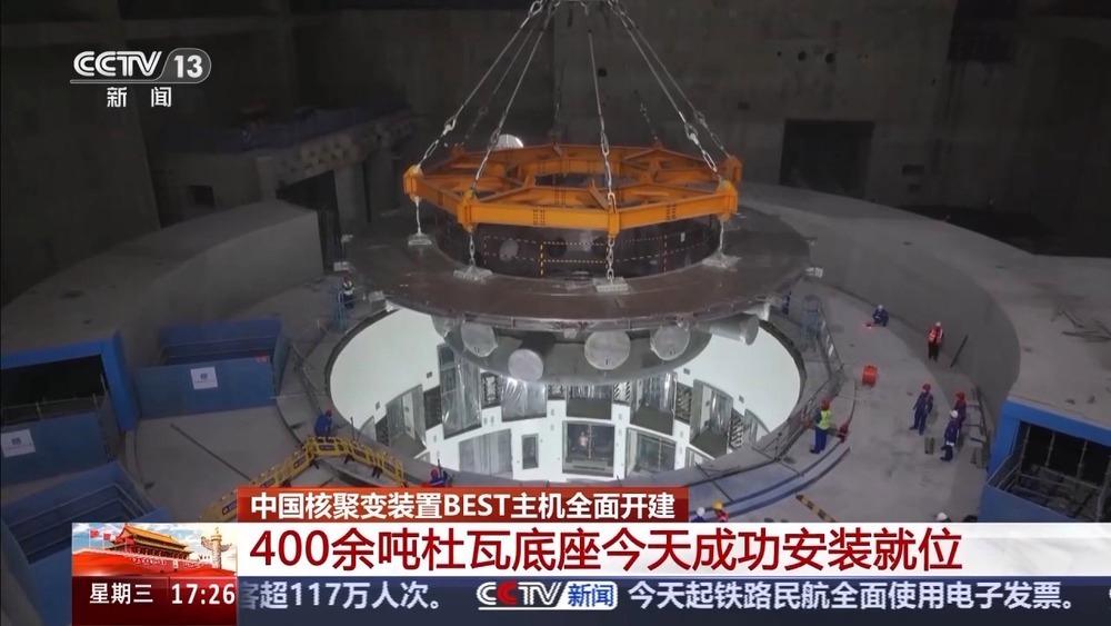 1日,位于安徽合肥的緊湊型聚變能實(shí)驗(yàn)裝置BEST項(xiàng)目建設(shè)取得關(guān)鍵突破。BEST裝置主機(jī)關(guān)鍵部件——杜瓦底座研制成功并順利完成交付,成功精準(zhǔn)落位安裝在BEST裝置主機(jī)大廳內(nèi),標(biāo)志著項(xiàng)目主體工程建設(shè)步入新階段。