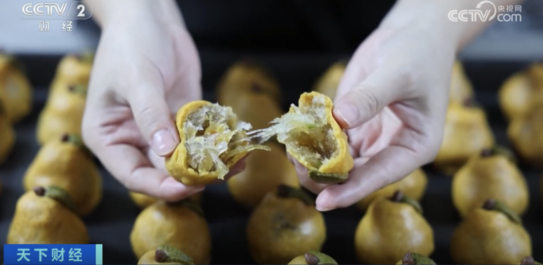 掰開(kāi)色澤金黃的餅皮,餡料里的柚子肉纖維清晰可見(jiàn),入口先是餅皮的酥軟綿密,隨后清甜的柚香在舌尖散開(kāi),層次豐富。