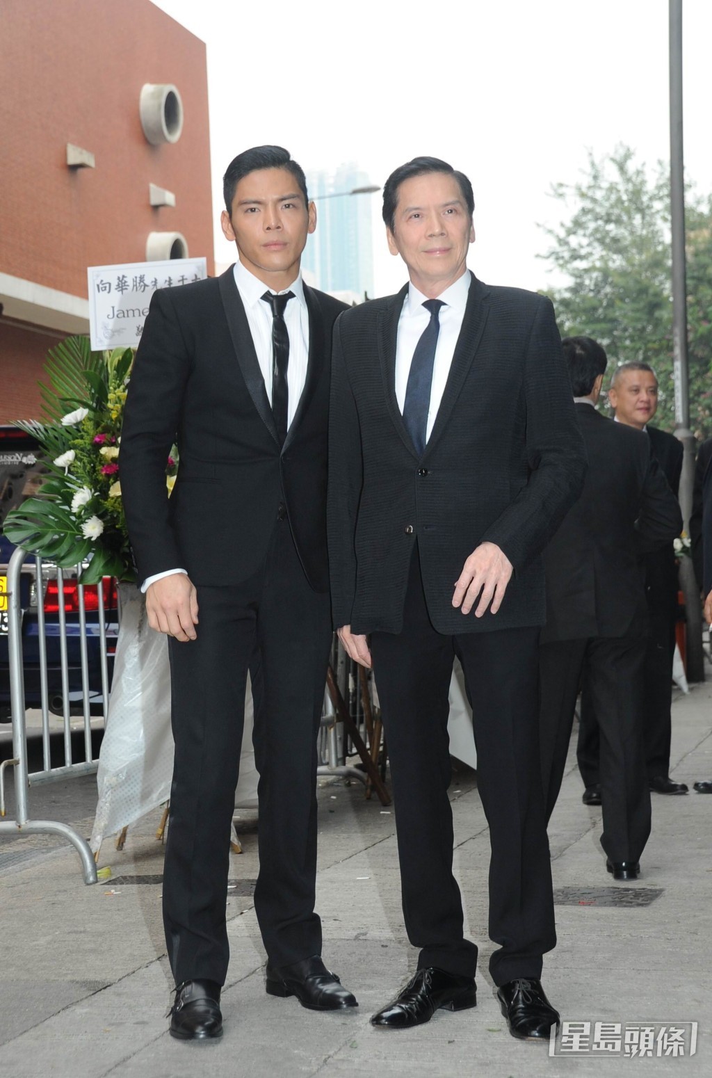 向華強(qiáng)(右)與兒子向佐2014年現(xiàn)身弟弟向華勝的追悼會(huì)。