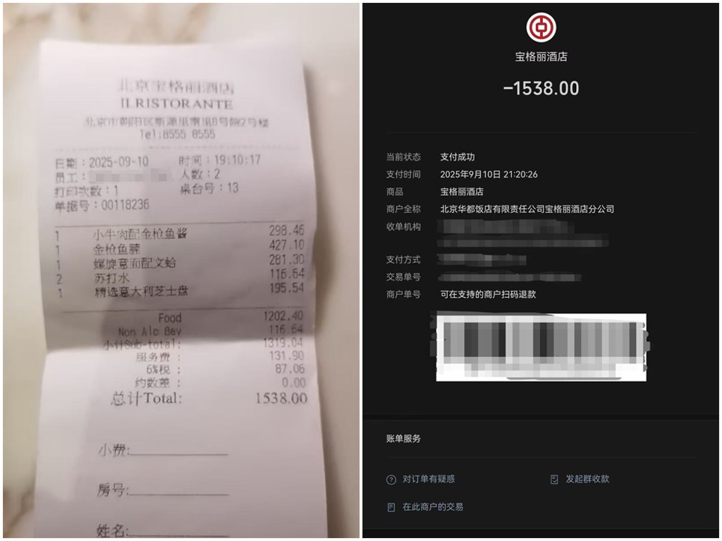 ▲田海蓉秀出9月10日晚間在北京寶格麗酒店的消費紀錄,打臉程青松提出的時間點。(圖/微博@田海蓉)