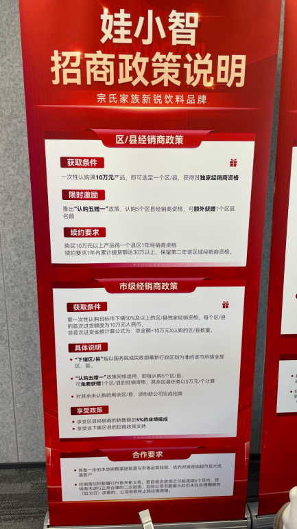 這并不是一場簡單的發(fā)布會,而是宗慶后胞弟宗澤后推出“娃小智”品牌后,正式向市場“報到”,宣布發(fā)展戰(zhàn)略及全國招商政策的場合。