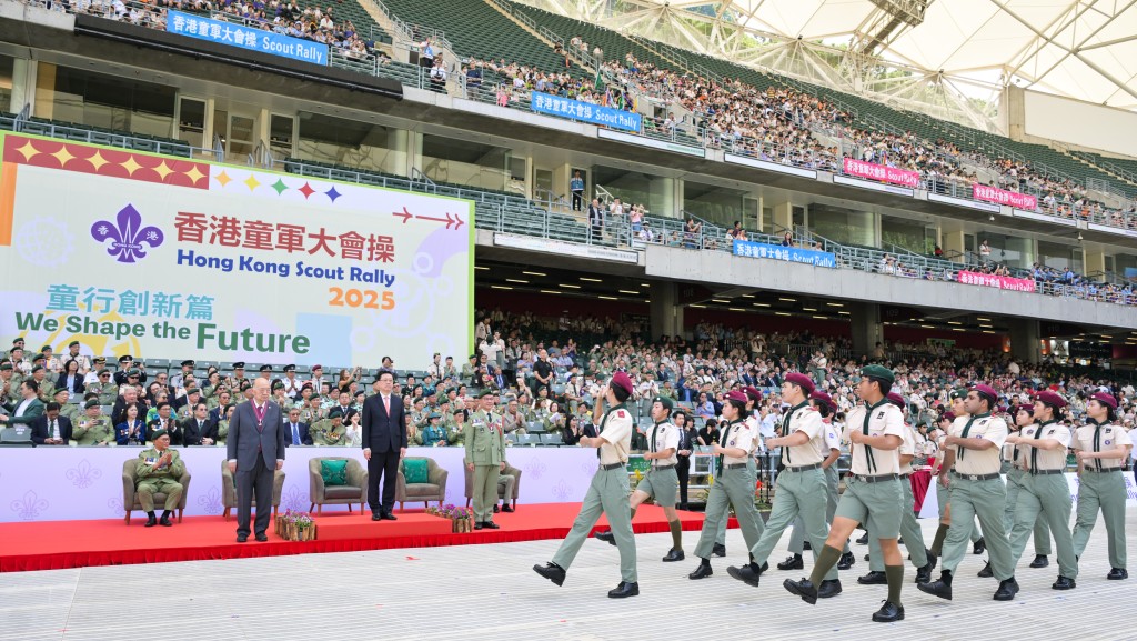 ▲李家超出席香港童軍大會操。政府新聞處圖片