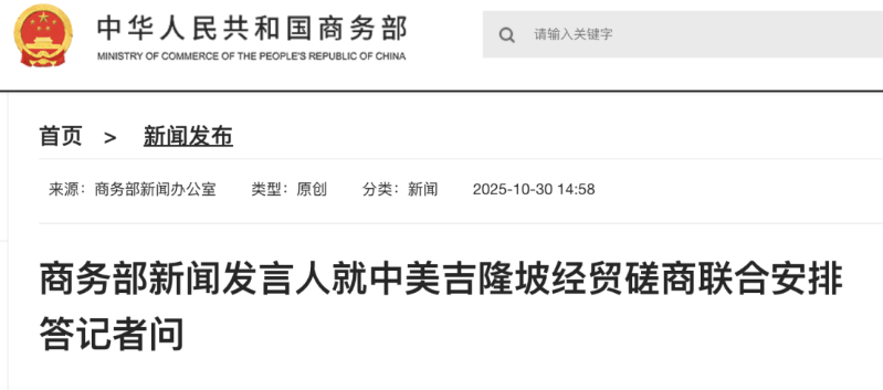 10月30日,商務(wù)部新聞發(fā)言人就中美吉隆坡經(jīng)貿(mào)磋商聯(lián)合安排答記者問。