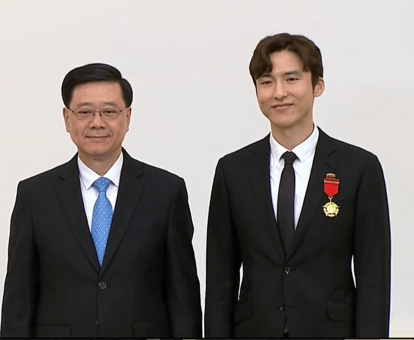 ▲李家超向梁智仁頒發(fā)大紫荊勛章。港臺(tái)FB影片截圖