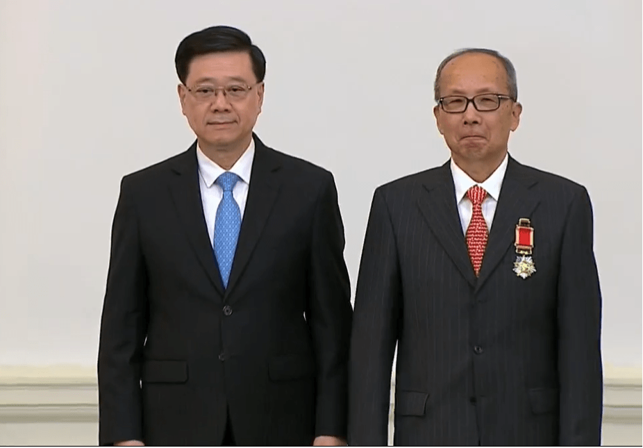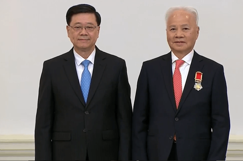 ▲星島新聞集團(tuán)主席蔡加讚獲金紫荊星章。港臺(tái)FB影片截圖