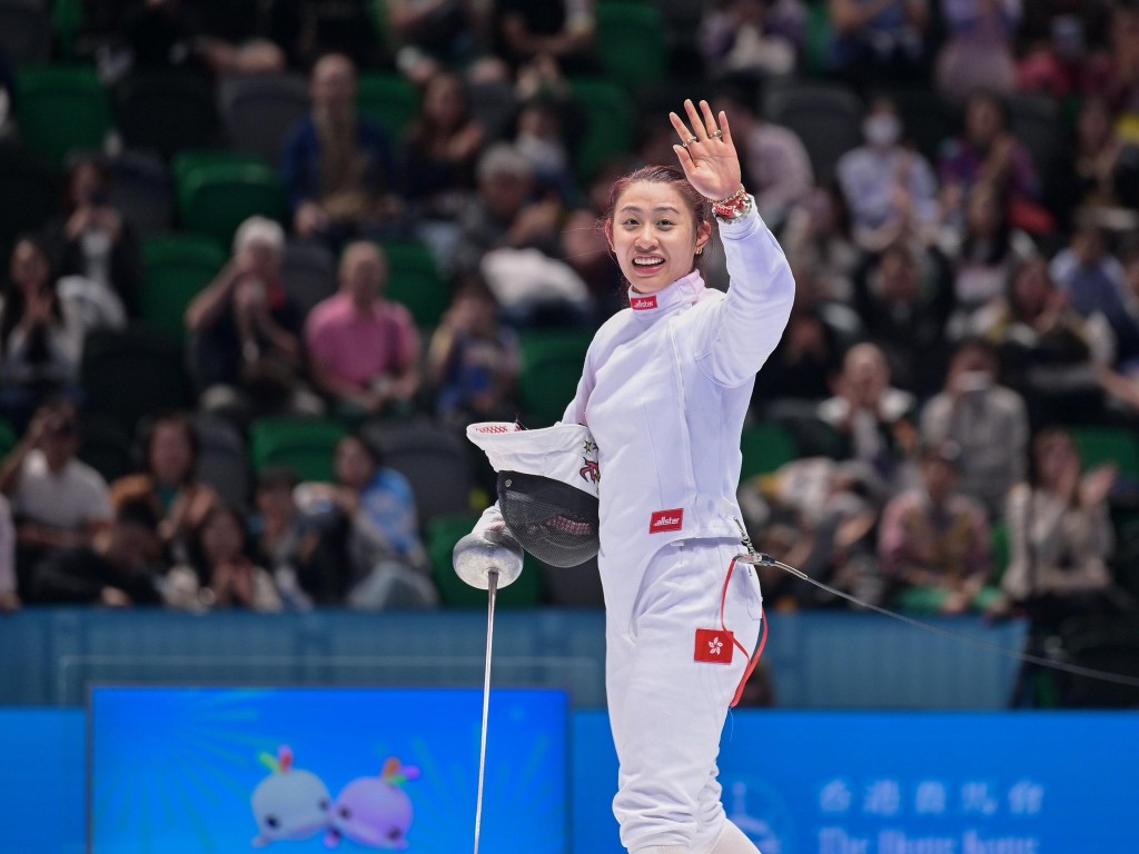 ▲女子重劍個(gè)人賽銅牌的佘繕妡。