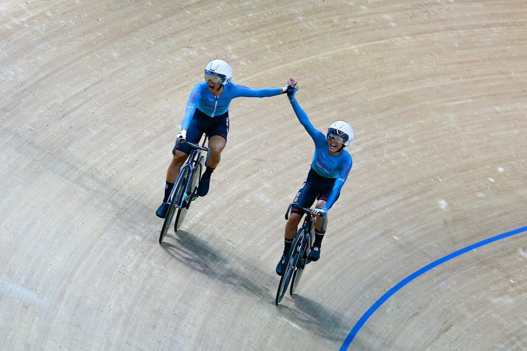 ▲李思穎和梁穎儀奪得場地自行車女子麥迪遜賽金牌。羅淑佩fb