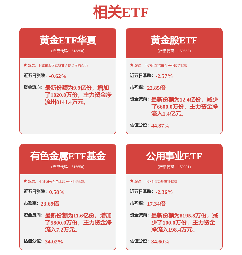 值得注意的是,黃金ETF華夏(518850)和黃金股ETF(159562)管理費(fèi)加托管費(fèi)合計(jì)0.2%的費(fèi)率在同類(lèi)產(chǎn)品中處于最低水平,助力投資人以更低成本參與黃金行情。