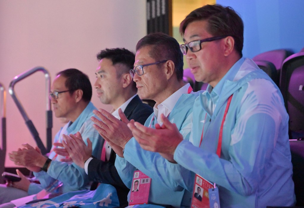 陳茂波去到啟德體藝館觀賽,并全力為香港運(yùn)動(dòng)員打氣。