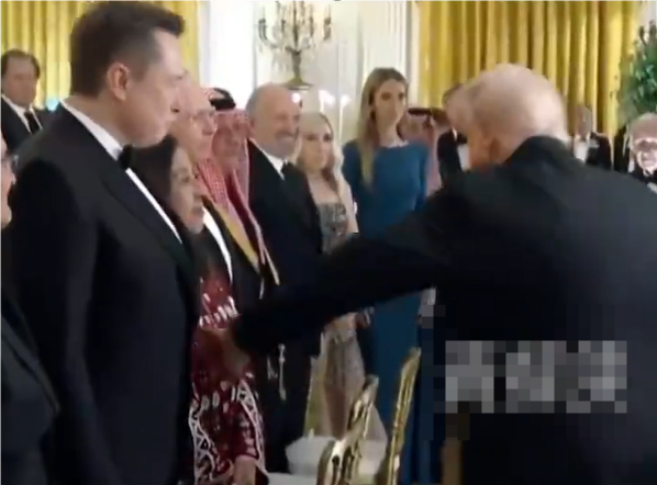 現(xiàn)場(chǎng)畫面顯示,眾人在列隊(duì)歡迎特朗普時(shí),他特意留步在馬斯克面前,然后拍了拍馬斯克的肚子,隨后馬斯克也點(diǎn)了點(diǎn)頭微笑。