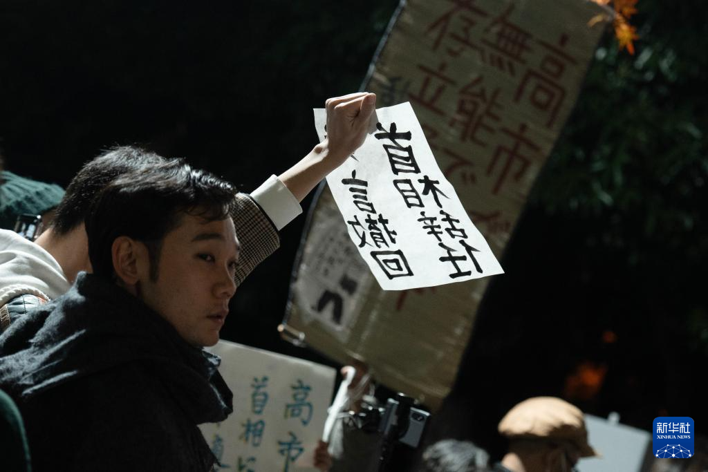 數(shù)百名日本民眾21日晚在位于東京的首相官邸前舉行集會(huì),抗議日本首相高市早苗近日在國(guó)會(huì)發(fā)表的涉臺(tái)錯(cuò)誤言論,要求其撤回相關(guān)表態(tài)并作出解釋和道歉。