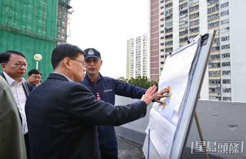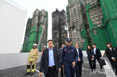▲李家超視察大埔宏福苑五級(jí)火現(xiàn)場(chǎng)。劉駿軒攝