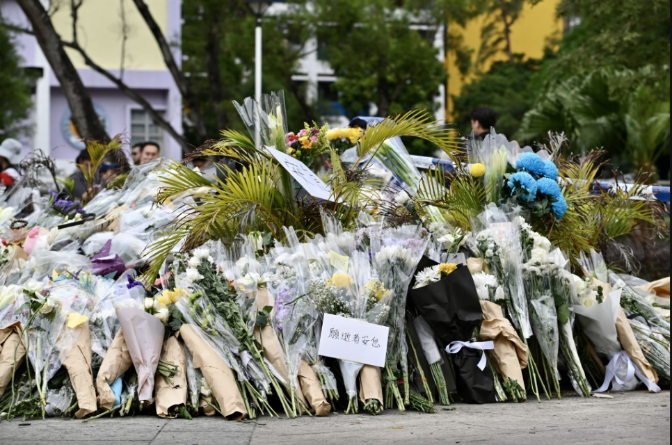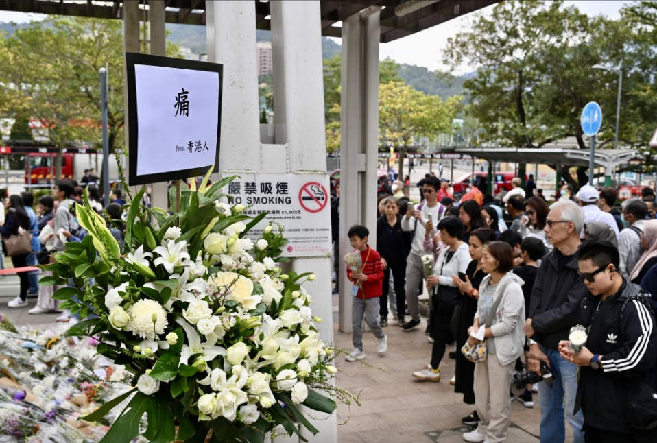 香港大埔五級火|“痛”字花牌致哀,千人悼念獻花,街坊:整個香港都很不開心