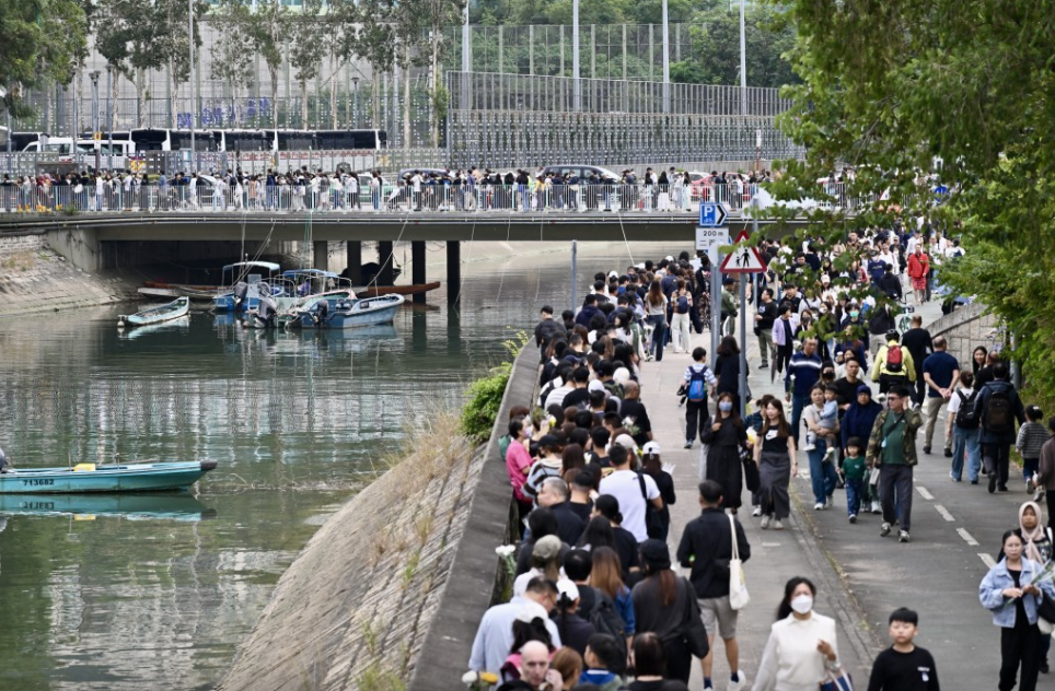 香港大埔宏福苑五級大火釀成至少128人死亡、83人受傷,大批市民今日(30日)繼續(xù)前往廣福休憩處獻花悼念遇難者。下午3時許,排隊人龍從休憩處延伸至大埔河及林村河行人徑,龍尾更達廣福橋花園?,F(xiàn)場所見,不斷有市民加入隊尾,目測逾千人等候。
