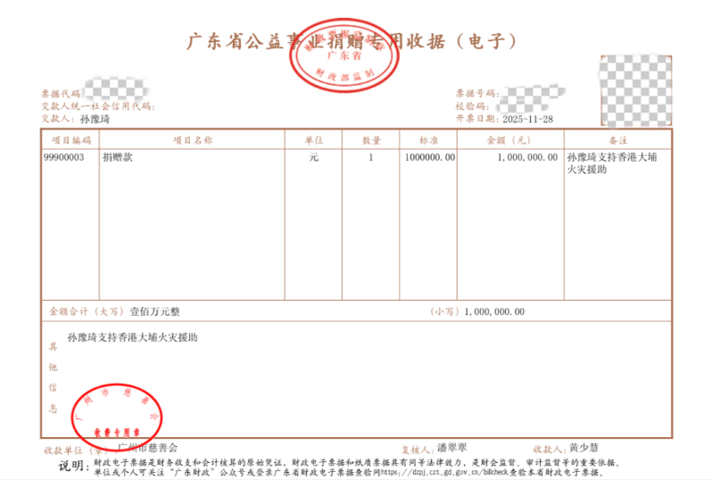 三七互娛聯(lián)合創(chuàng)始人、廣東省游心公益基金會理事長孫豫琦女士,為表達個人對香港受災(zāi)市民的關(guān)心,特在第一時間通過廣州市慈善會,向香港大埔宏福苑火災(zāi)援助事項捐贈人民幣100萬元,用于災(zāi)民救助和善后工作。