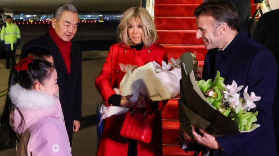 法國總統(tǒng)馬克龍12月3日抵達北京,開始對中國進行為期三天的國事訪問。中共中央政治局委員、外交部長王毅到機場迎接。