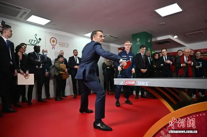 隨后,馬克龍前往四川省體育館看望參加混團(tuán)世界杯比賽的法國(guó)乒乓球運(yùn)動(dòng)員,并與法國(guó)隊(duì)球員一起同中國(guó)乒乓球運(yùn)動(dòng)員切磋球技。