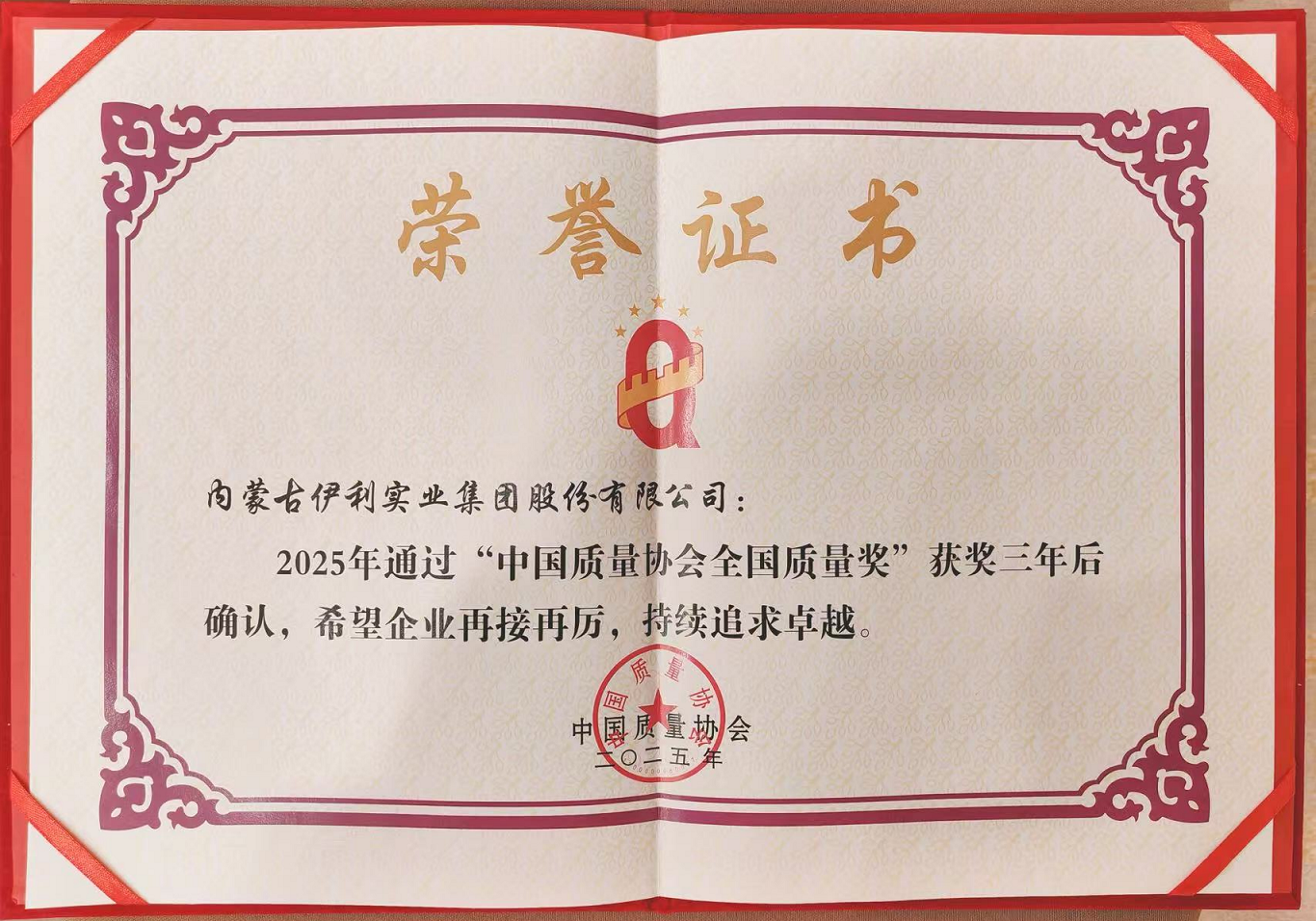 12月3日,2025中國質(zhì)量協(xié)會年會暨第三屆追求卓越大會在北京舉行,會上公布了“第十九屆中國質(zhì)量協(xié)會全國質(zhì)量獎通過確認組織”名單。作為榮獲第十九屆全國質(zhì)量獎的唯一乳制品企業(yè),伊利集團憑借持續(xù)卓越的質(zhì)量管理實踐和顯著的綜合績效提升,順利通過“中國質(zhì)量協(xié)會全國質(zhì)量獎”獲獎三年后的評審確認,再次彰顯在行業(yè)質(zhì)量領域的持續(xù)引領地位。