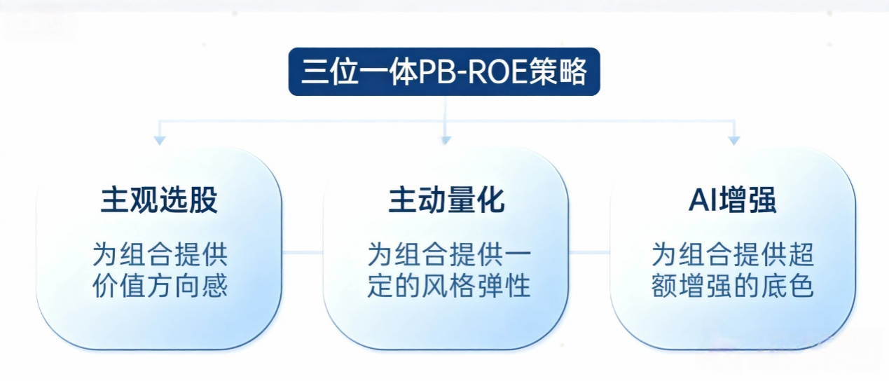 主觀選股層面,鑒于A股市場(chǎng)對(duì)PB-ROE風(fēng)格標(biāo)的的關(guān)注度較低,團(tuán)隊(duì)通過(guò)研判價(jià)值趨勢(shì),有較大概率獲取超額收益;基本面量化層面,借助多元化風(fēng)格子策略進(jìn)行均衡配置,進(jìn)一步強(qiáng)化組合表現(xiàn);AI增強(qiáng)層面,先篩選出符合PB-ROE風(fēng)格的基礎(chǔ)股票池,再運(yùn)用非線性方法開(kāi)展深度優(yōu)化,提升組合選股精度。