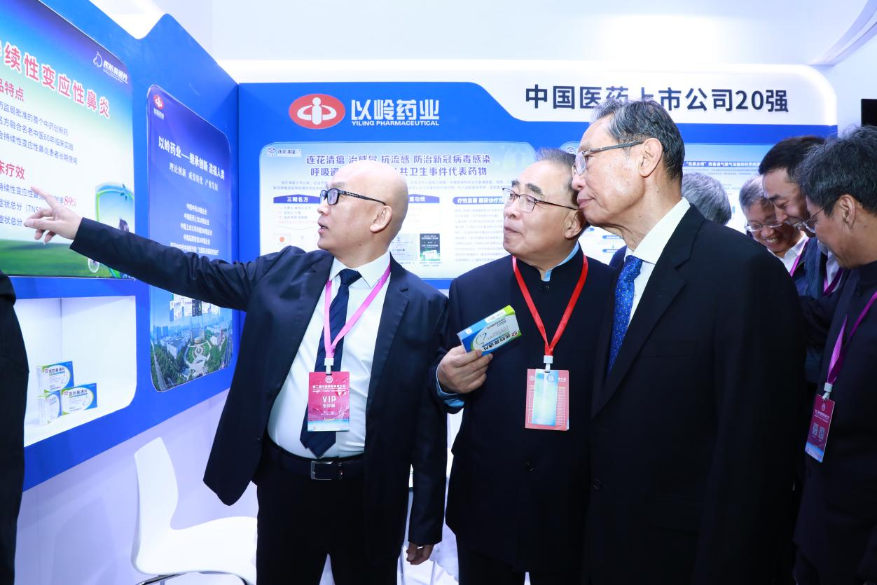 大會(huì)開(kāi)幕式前,張伯禮院士、鐘南山院士等院士專家團(tuán)隊(duì)來(lái)到以嶺藥業(yè)展臺(tái)。以嶺藥業(yè)醫(yī)院事業(yè)部總經(jīng)理張岸巍向院士專家團(tuán)隊(duì)介紹了連花清瘟膠囊、連花清咳片、芪防鼻通片等企業(yè)呼吸領(lǐng)域重點(diǎn)產(chǎn)品。