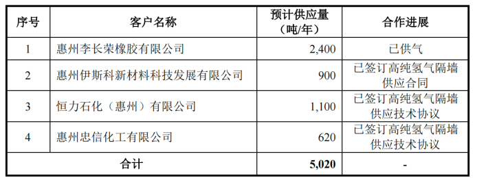 招股書顯示,公司高純氫產(chǎn)線于2024年7月投產(chǎn),當(dāng)前年產(chǎn)能為4000噸。本次IPO擬投入1.6億元募集資金用于該產(chǎn)線的擴產(chǎn),預(yù)計新增年產(chǎn)能約13000噸。項目一旦建成,公司高純氫總產(chǎn)能將躍升至約17000噸/年。