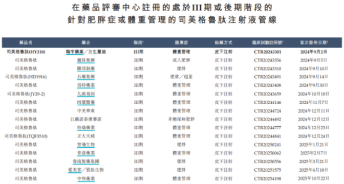 蔓迪國際在體重管理領(lǐng)域的業(yè)務(wù)儲備或許更受外界關(guān)注。招股書顯示,公司用于體重管理的長效型GLP-1受體激動劑—司美格魯肽注射液,正在中國進(jìn)行III期臨床試驗,目標(biāo)于2026年上半年提交藥品注冊申請。公司稱,該產(chǎn)品有望成為中國首批獲批用于體重管理的國產(chǎn)司美格魯肽制劑。