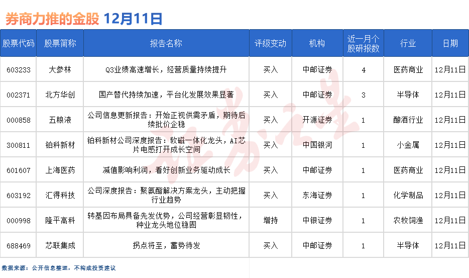 除了上述個(gè)股外,還有五糧液、鉑科新材、上海醫(yī)藥、匯得科技、隆平高科、芯聯(lián)集成等多股備受券商關(guān)注。