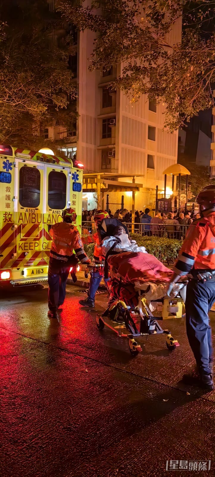 根據(jù)網(wǎng)上圖片及影片,該高層單位當(dāng)時(shí)已陷入一片火海,現(xiàn)場(chǎng)濃煙密布,警鐘持續(xù)鳴響。消防員救出一名男傷者,救護(hù)員隨即在該樓層升降機(jī)前方位置,為傷者提供初步治理。消息指,51歲姓謝男傷者為起火單位戶主,他身體多處地方燒傷,疑因傷勢(shì)嚴(yán)重一度不斷痛苦掙扎。他隨后被救護(hù)車送往屯門醫(yī)院接受治理。