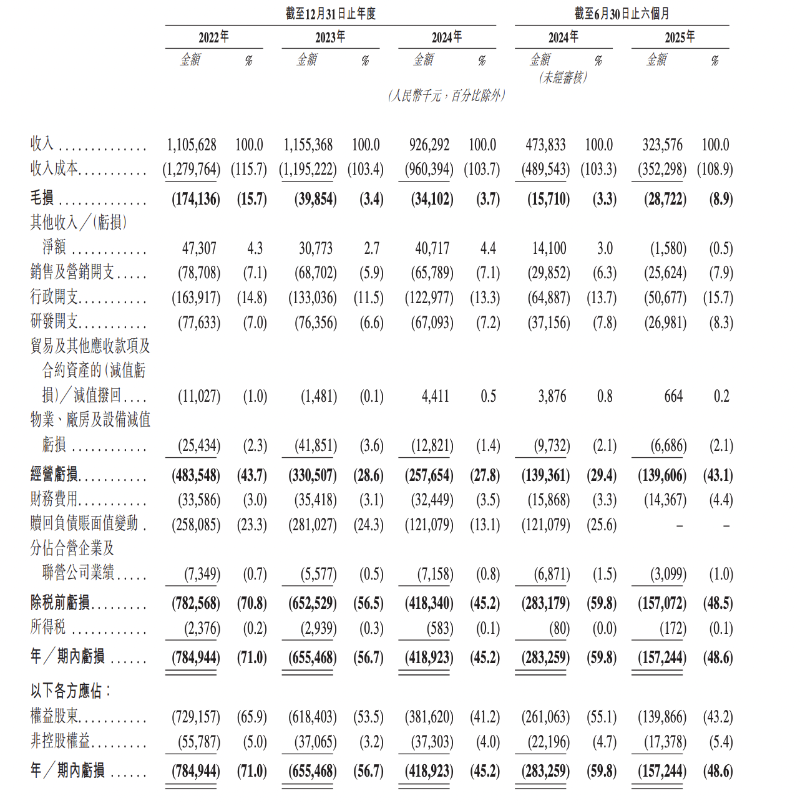 業(yè)績(jī)方面,2022年至2024年,奧動(dòng)新能源收入分別為11.06億元、11.55億元、9.26億元;年內(nèi)虧損分別為7.85億元、6.55億元、4.19億元;毛損率分別為15.7%、3.4%、3.7%。