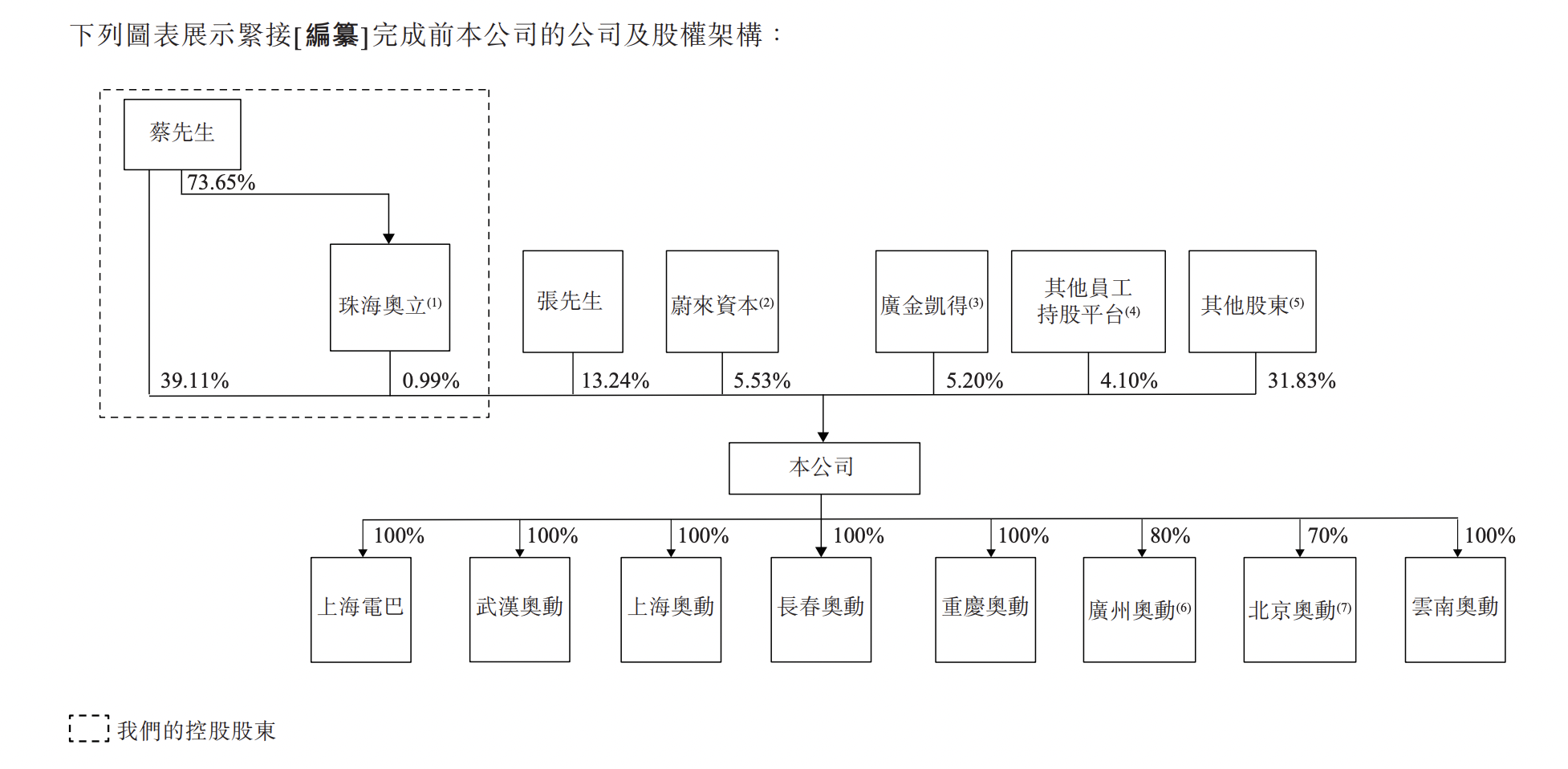 遞表前,奧動(dòng)新能源由蔡?hào)|青直接擁有約39.11%及由珠海奧立直接擁有約0.99%,珠海奧立為公司的員工持股平臺(tái)之一,由蔡?hào)|青作為唯一普通合伙人控制。蔡?hào)|青及珠海奧立為公司的控股股東。