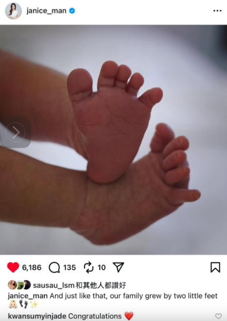 ▲Janice Man秘密誕B,今年9月底在社交平臺報喜。
