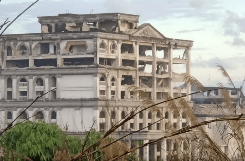 ▲這張由柬埔寨新聞社(AKP)于2025年12月13日凌晨拍攝并發(fā)布的資料照片顯示,柬埔寨菩薩省一處賭場在泰柬邊境衝突中,遭泰國空襲破壞。法新社