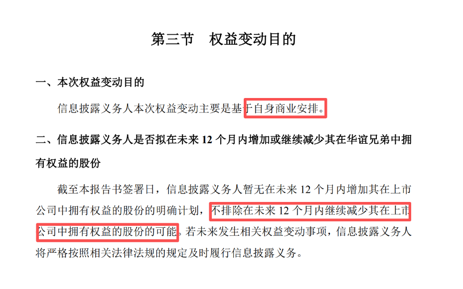 華誼兄弟表示,本次減持有利于公司股權(quán)結(jié)構(gòu)的穩(wěn)定,不會對公司正常經(jīng)營產(chǎn)生不利影響。本次變動之后,阿里創(chuàng)投及其一致行動人馬云不再是華誼兄弟持股5%以上股東。本次權(quán)益變動不會導(dǎo)致公司控股股東、實際控制人發(fā)生變更。
