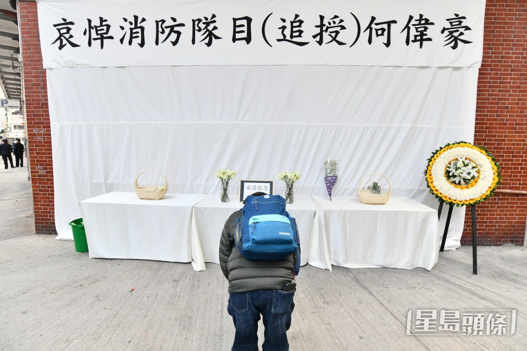 羅先生表示,“何偉豪為我哋咁辛苦,應(yīng)尊敬佢,佢犧牲性命及付出,希望佢得到安息。”在英國留學(xué)的關(guān)同學(xué)對事件感痛心及傷心,趁圣誕假期回港亦到來致祭。(何偉豪為我們這么辛苦,應(yīng)該尊敬他。他犧牲了性命和付出,希望他得到安息。”在英國留學(xué)的關(guān)同學(xué)對事件感到痛心和傷心,趁圣誕假期回港也前來致祭)“今次大火,好多市民走咗,今日專程過來悼念何偉豪及所有死者,喺英國時(shí)做唔到乜嘢,希望今日盡公民責(zé)任,希望所有死難者及何偉豪的家屬,保重身體。(這次大火,很多市民遇難了,今天專程過來悼念何偉豪以及所有死者。在英國時(shí)什么都做不了,希望今天盡一個(gè)公民的責(zé)任。希望所有死難者和何偉豪的家屬,保重身體。)”
