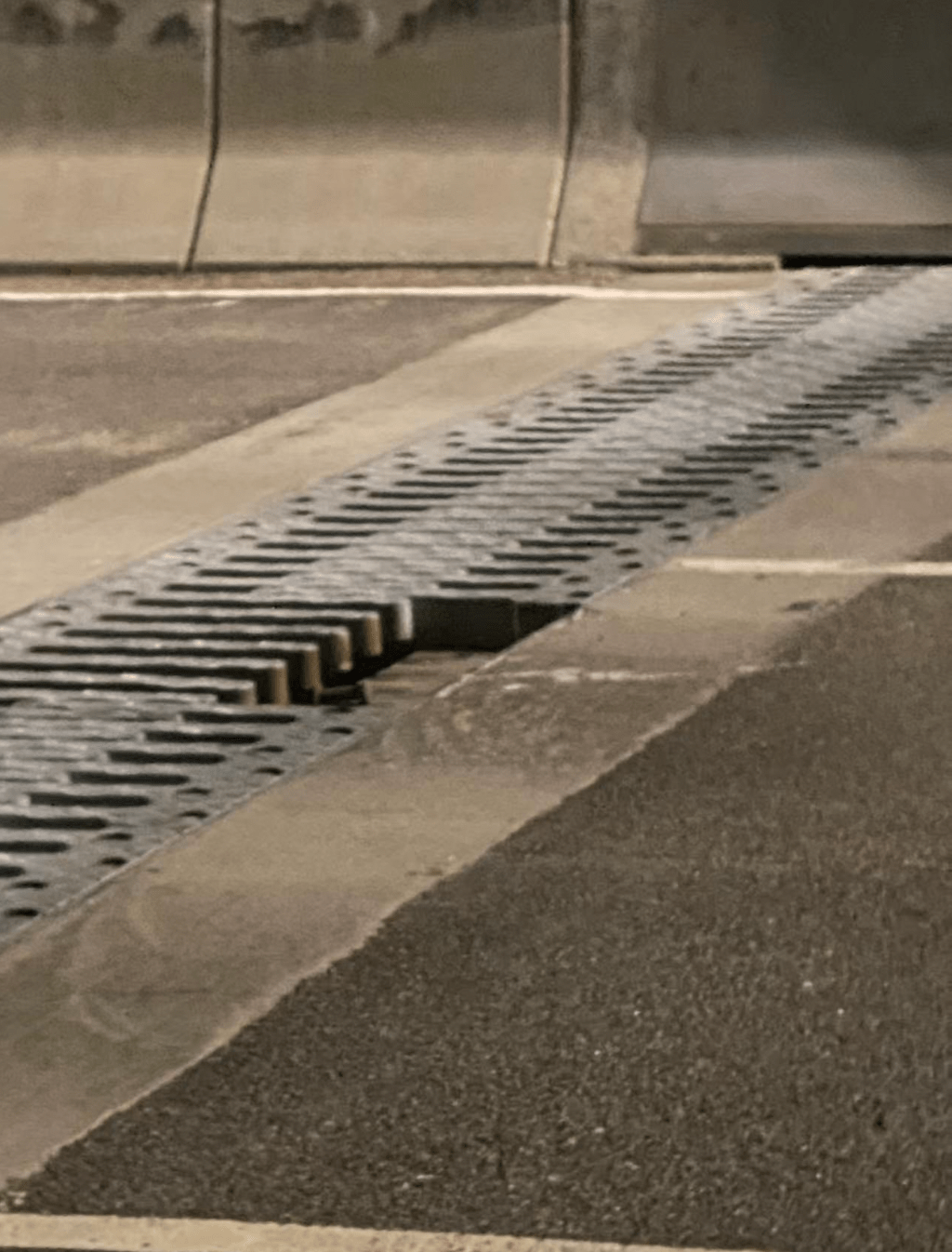 ▲網(wǎng)上亦流傳圖片顯示,大橋橋面一處伸縮縫疑有金屬構(gòu)件脫落,路面出現(xiàn)明顯缺口,形成局部凹陷。fb“港車北上問題組”