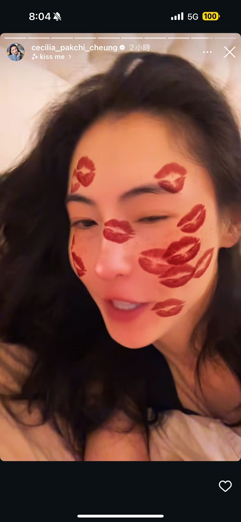 張栢芝平安夜激罕床上翻滾,滿面“唇印”神情嫵媚