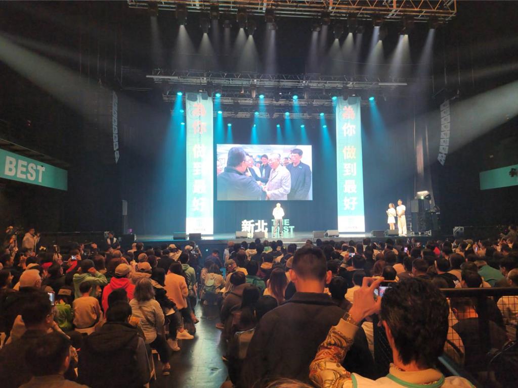 ▲黃國昌27日在新北市新莊舉辦首場造勢活動暖身,柯文哲現(xiàn)身力挺。