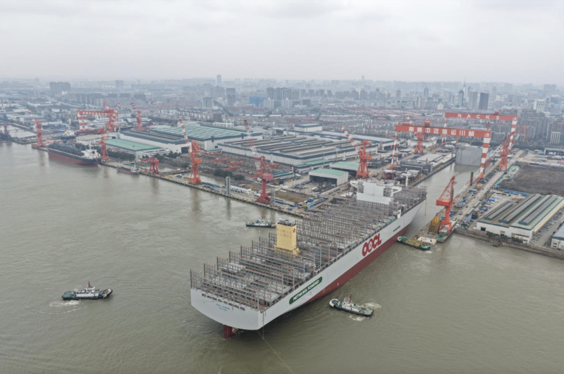 本次下水的24000標箱甲醇雙燃料集裝箱船,由南通中遠海運川崎船舶工程有限公司自主研發(fā)設計。該船采用先進的甲醇雙燃料動力系統(tǒng),兼具高效能與低排放特性,在全程運營中可實現(xiàn)“碳中和”目標。