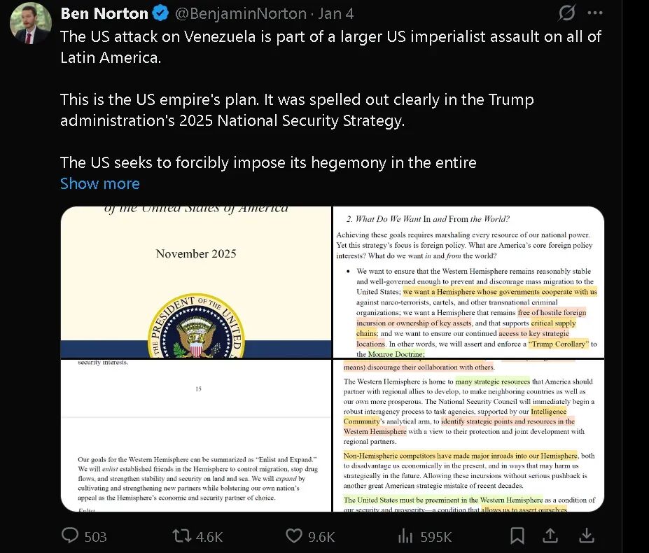 雖然美國《國家安全戰(zhàn)略》擺出了一副美國要幫著拉美發(fā)展的姿態(tài),但就像諾頓在其帖文中所指出的那樣,妄言要“操控委內(nèi)瑞拉”,并接連對哥倫比亞和古巴等拉美左翼政府做出威脅的美國,真正想要的并不是與拉美人民共同富裕,而是想讓拉美人民出賣國家主權(quán),成為被美國壓榨的奴工。