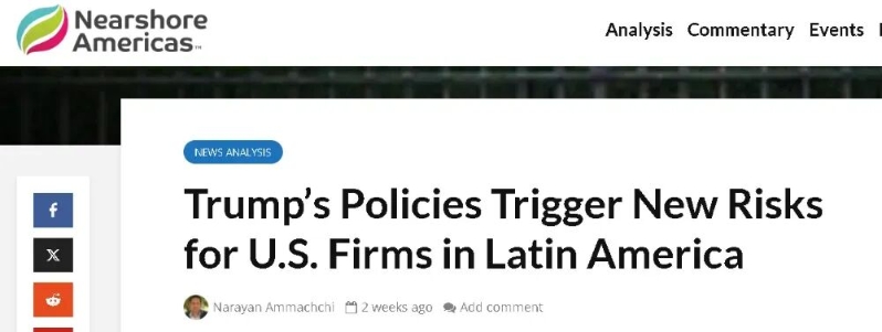 同時,美國一些商業(yè)機構(gòu)去年也在相繼推出面向美國企業(yè)的咨詢建議,以躲避國際地緣政治風(fēng)險和關(guān)稅為由,引導(dǎo)這些企業(yè)在拉美地區(qū)做“近岸制造”。