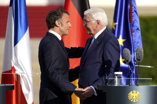 ▲法國總統(tǒng)馬克龍和德國總統(tǒng)施泰因邁爾不約而同批評美國外交政策。美聯(lián)社