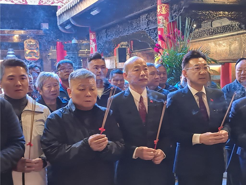 ▲韓國(guó)瑜、江啟臣10日赴臺(tái)中市大甲鎮(zhèn)瀾宮一同發(fā)新春聯(lián)。