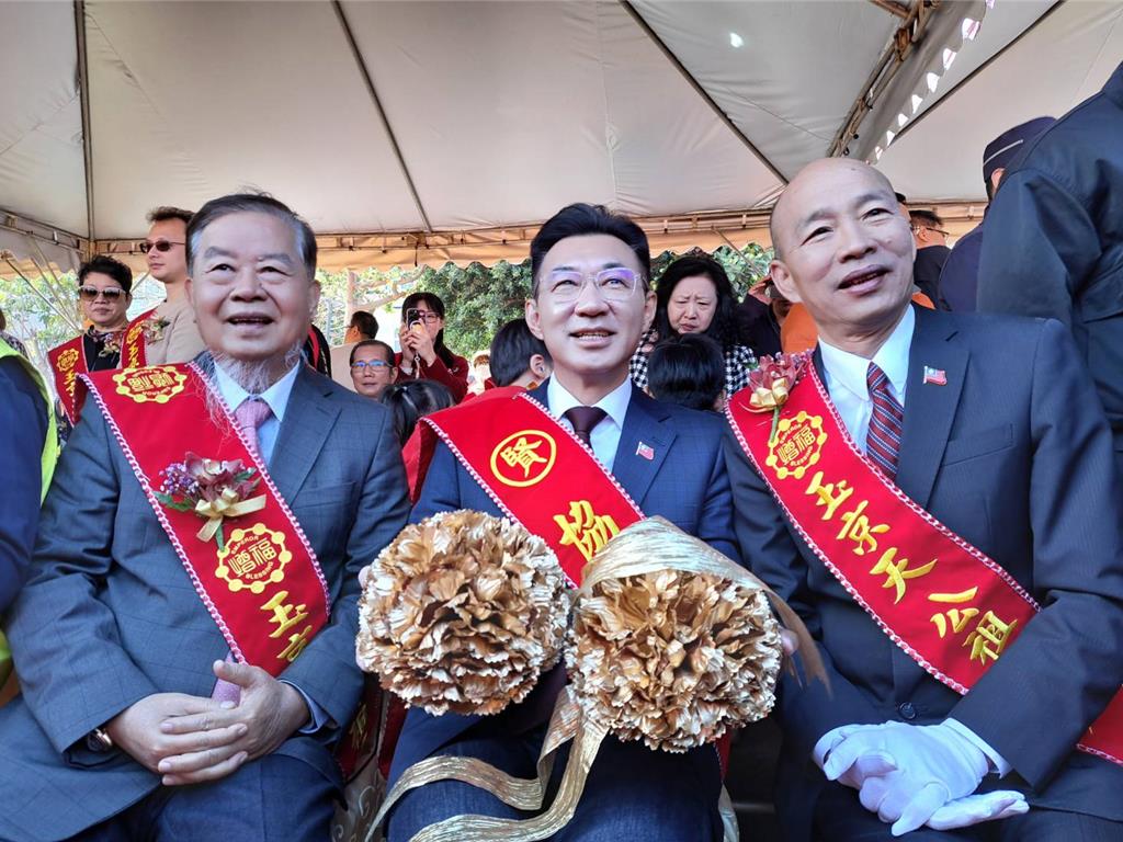 臺(tái)中市民政局今(10日)于玉京天公祖總廟舉行龍鳳呈瑞龍柱完成大典,清水女兒楊瓊瓔廣邀藍(lán)營(yíng)大咖出席,與會(huì)者包括鄭麗文、臺(tái)中市長(zhǎng)盧秀燕、韓國(guó)瑜、國(guó)民黨最高顧問(wèn)王金平、江啟臣、國(guó)民黨團(tuán)總召傅崐萁及楊瓊瓔等人,盧秀燕率先到達(dá)會(huì)場(chǎng),接續(xù)為鄭麗文等人,楊立馬協(xié)助安排入座,3姝共聚一起,頻頻交頭接耳,笑聲不斷。