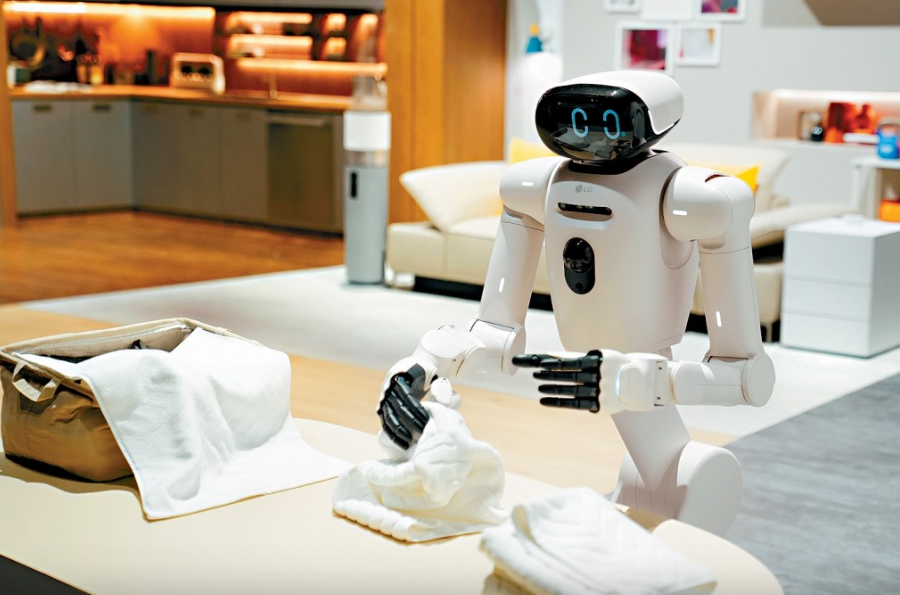 韓國LG電子展示剛發(fā)表的智能家庭機(jī)械人CLOiD。這款機(jī)械人靠輪子在地面前進(jìn),且能連接各種智慧家電,包括冰箱、洗衣機(jī),協(xié)助完成家務(wù)。CLOiD能撿起鑰匙、從烤箱中取出餐盤,甚至摺疊衣物,展現(xiàn)實(shí)際居家應(yīng)用的能力。