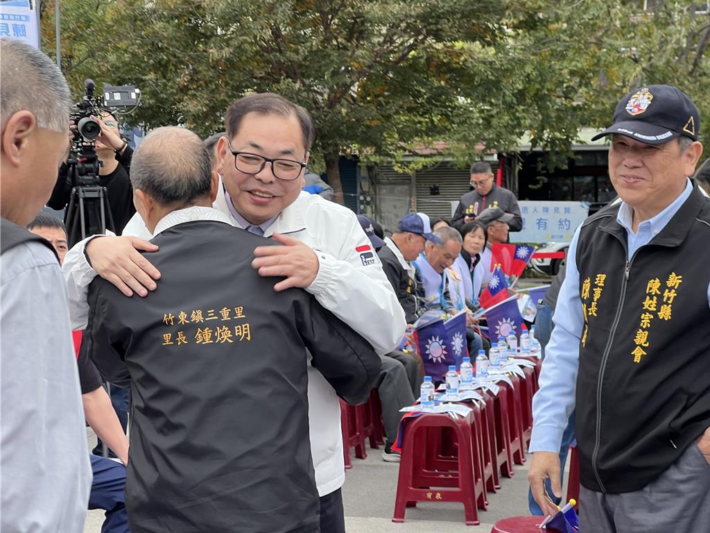 ▲新竹縣副縣長陳見賢10日在竹東鎮(zhèn)戲曲公園舉行“鄉(xiāng)親有約”,吸引近3000名鄉(xiāng)親到場相挺。