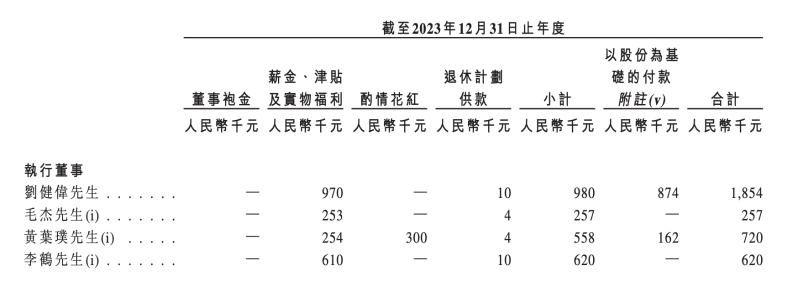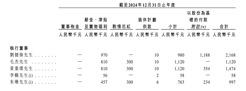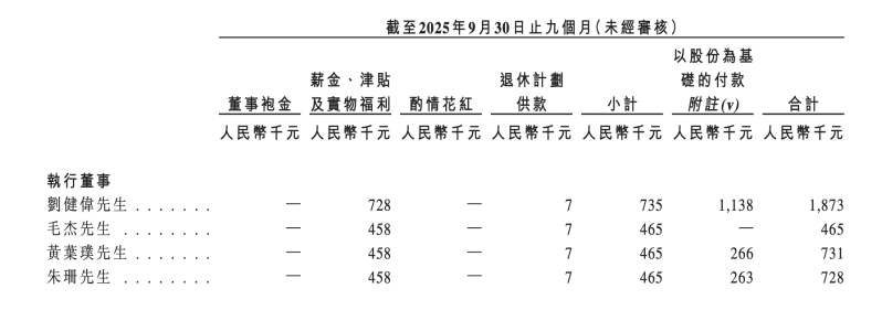 薪酬方面,2023年、2024年及2025年前9月,黃葉璞薪酬(剔除以股份為基礎(chǔ)的付款)分別為55.8萬元、112萬元、46.5萬元。